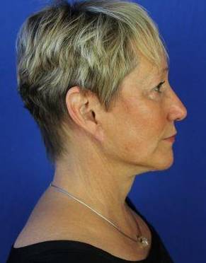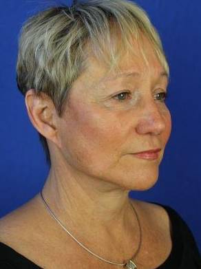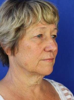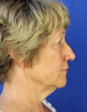 A Healdsburg patient who is interested in facial rejuvenation. She has a tremendous amount of skin in the upper lids hanging on her eyelashes with loose skin in the lower lids as well. Patient did not like her jowling. She is out in the sun a lot and is asking about the brown spots on her face. Dr. Jacobs suggested a rhytidectomy to help contour her jowl area, a coronal forehead lift with upper and lower blepharoplasty to help correct the looseness in her lids, and a TCA 30% chemical peel for her sun damage. Our patient looks terrific and is so happy, for the post op photo she simply could not stop smiling!
