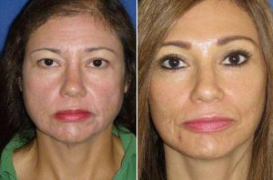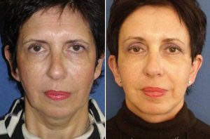 This patient had a facelift along with a rhinoplasty and a TCA chemical peel. After photo is 3 weeks post-op.